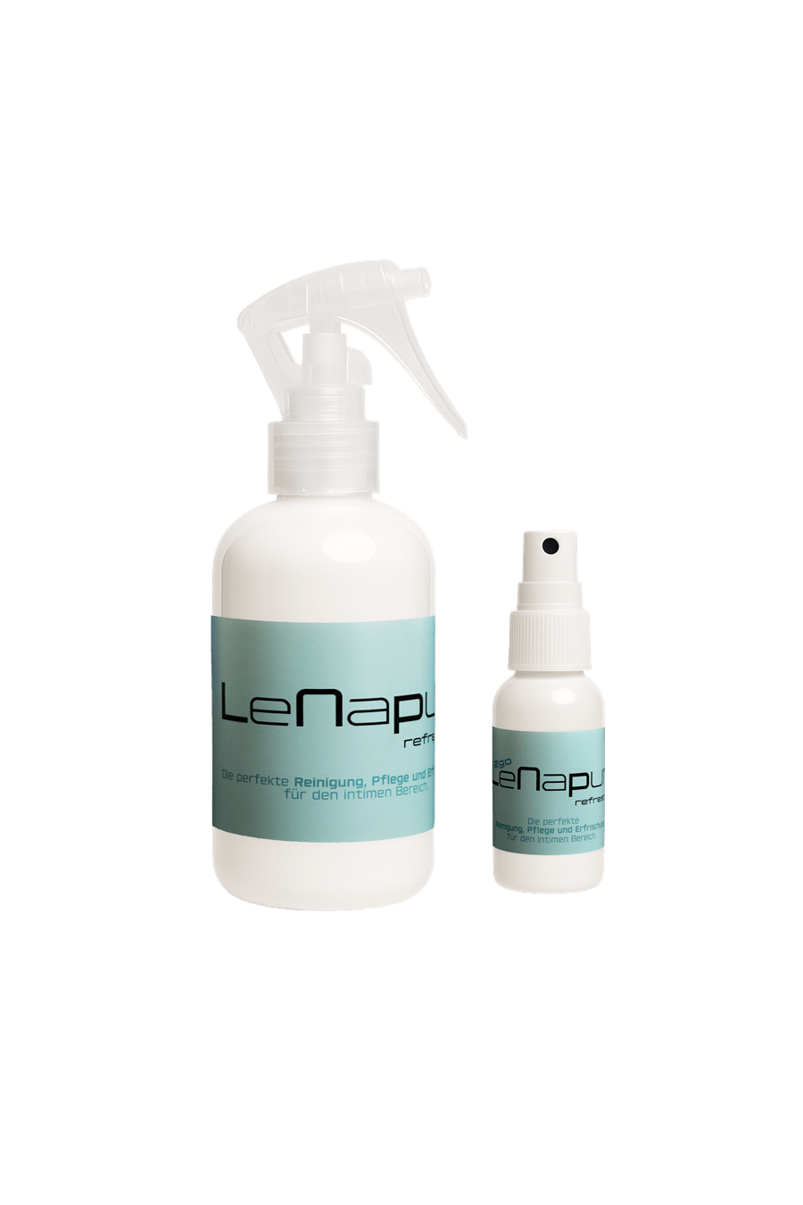 Our set contains "LeNapur refresh" in the 250 ml household size as well as the practical 50 ml version for on the go – at a special price.